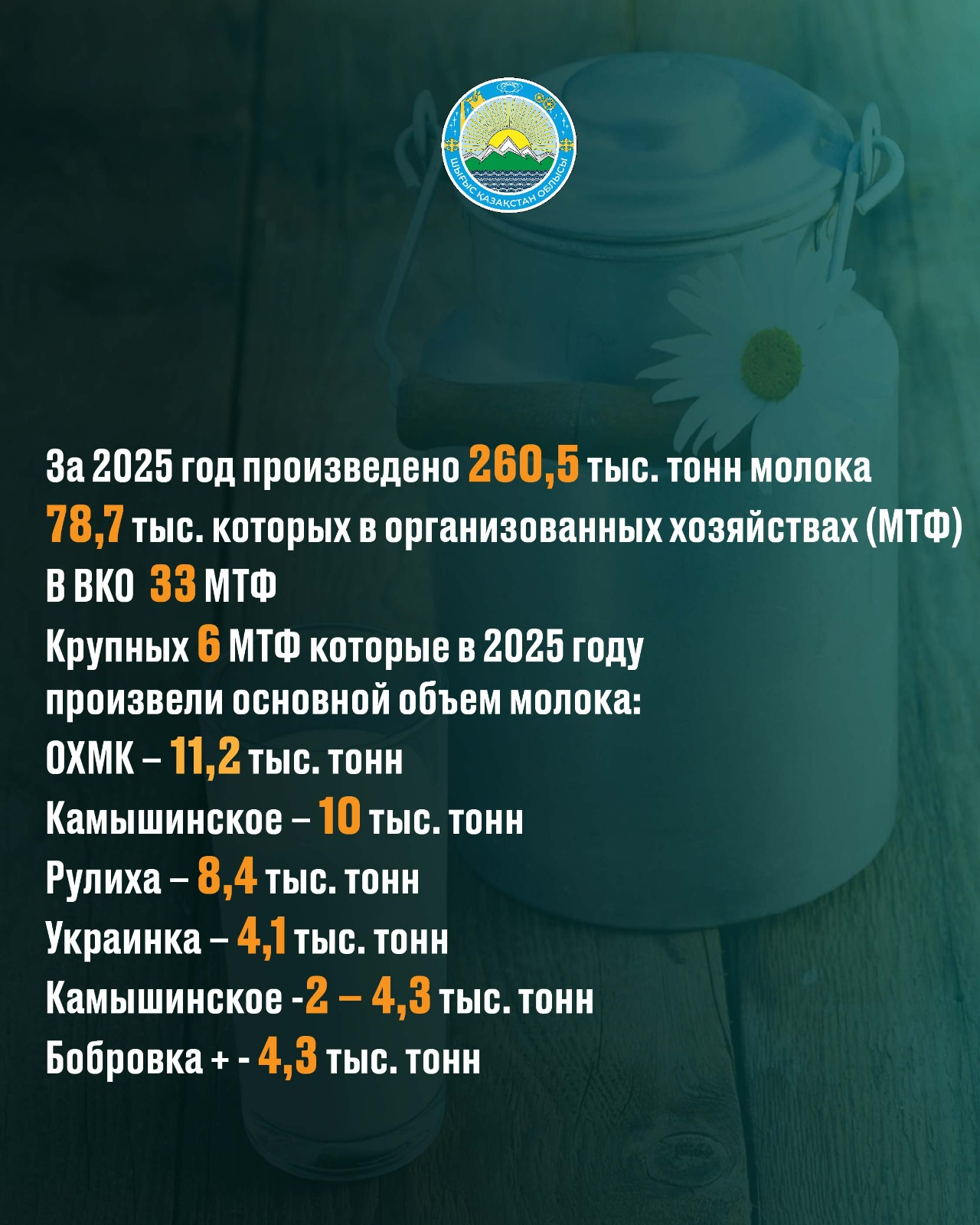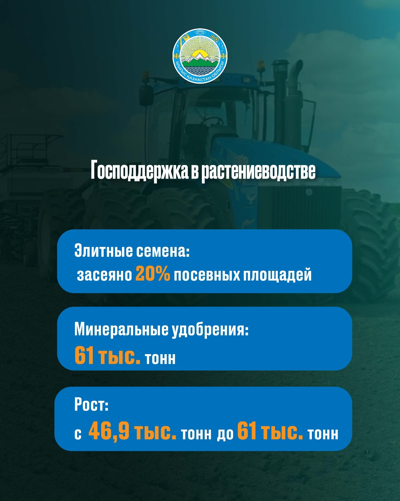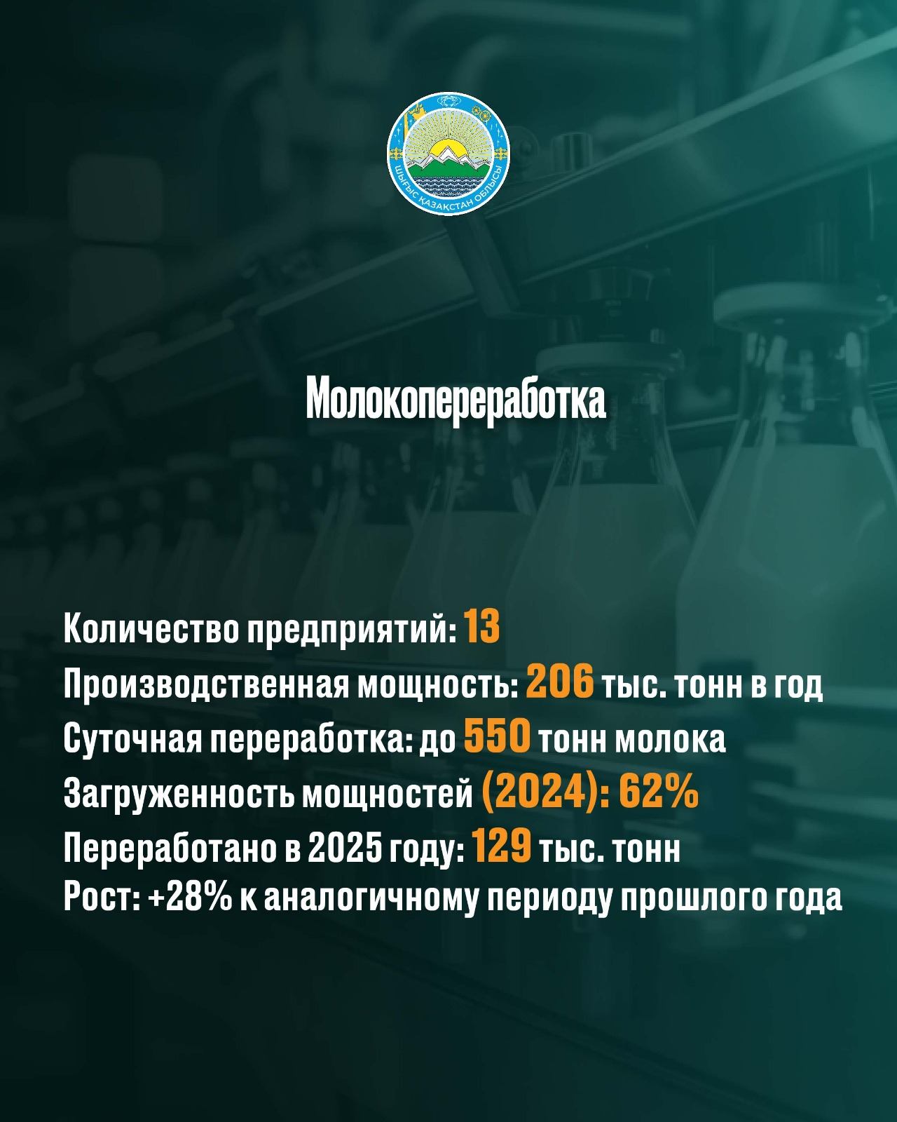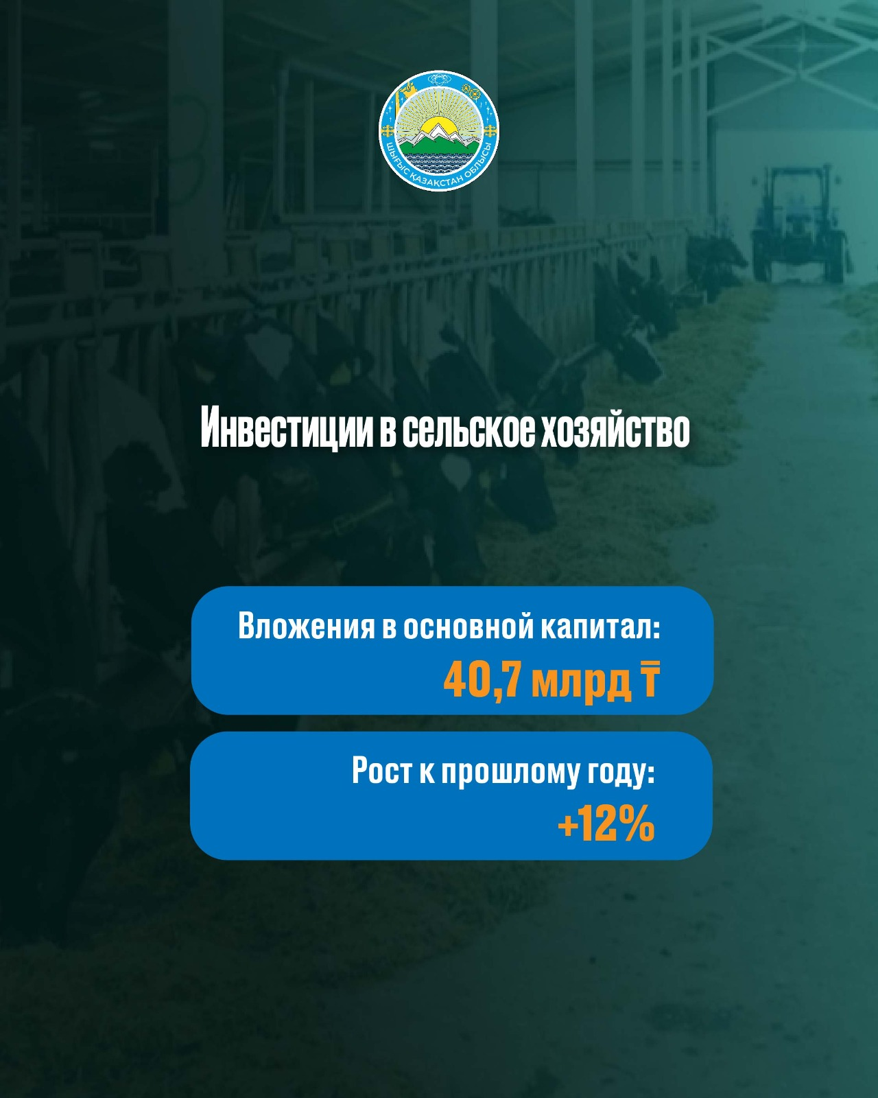 Объём продукции сельского хозяйства достиг 554,6 млрд тенге, при этом основной рост обеспечен за счёт развития животноводства.