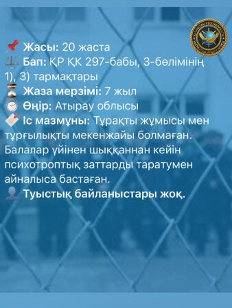 Оның айтуынша, бұрын жаман ортаға түсіп қалған. Туған-туысы жоқ — балалық шағы балалар үйінде өткен.