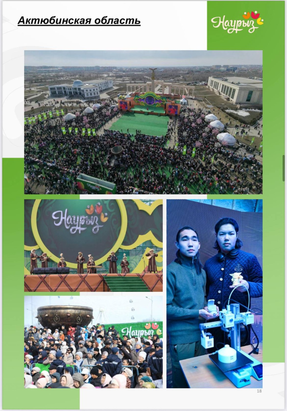 Акмолинская область продемонстрировала один из самых высоких показателей по количеству праздничных локаций, установив 316 тематических юрт. В регионе ставку сделали на интерактивную цифровизацию: в рамках 400 мероприятий внедрили 50 современных IT-решений, включая VR-технологии. Праздник вживую посетили более 150 тысяч человек, а в онлайн-формате за торжествами наблюдали свыше 800 тысяч пользователей. Творческую атмосферу поддерживали 150 деятелей культуры, а хедлайнером программы стала легендарная группа «Urker».
