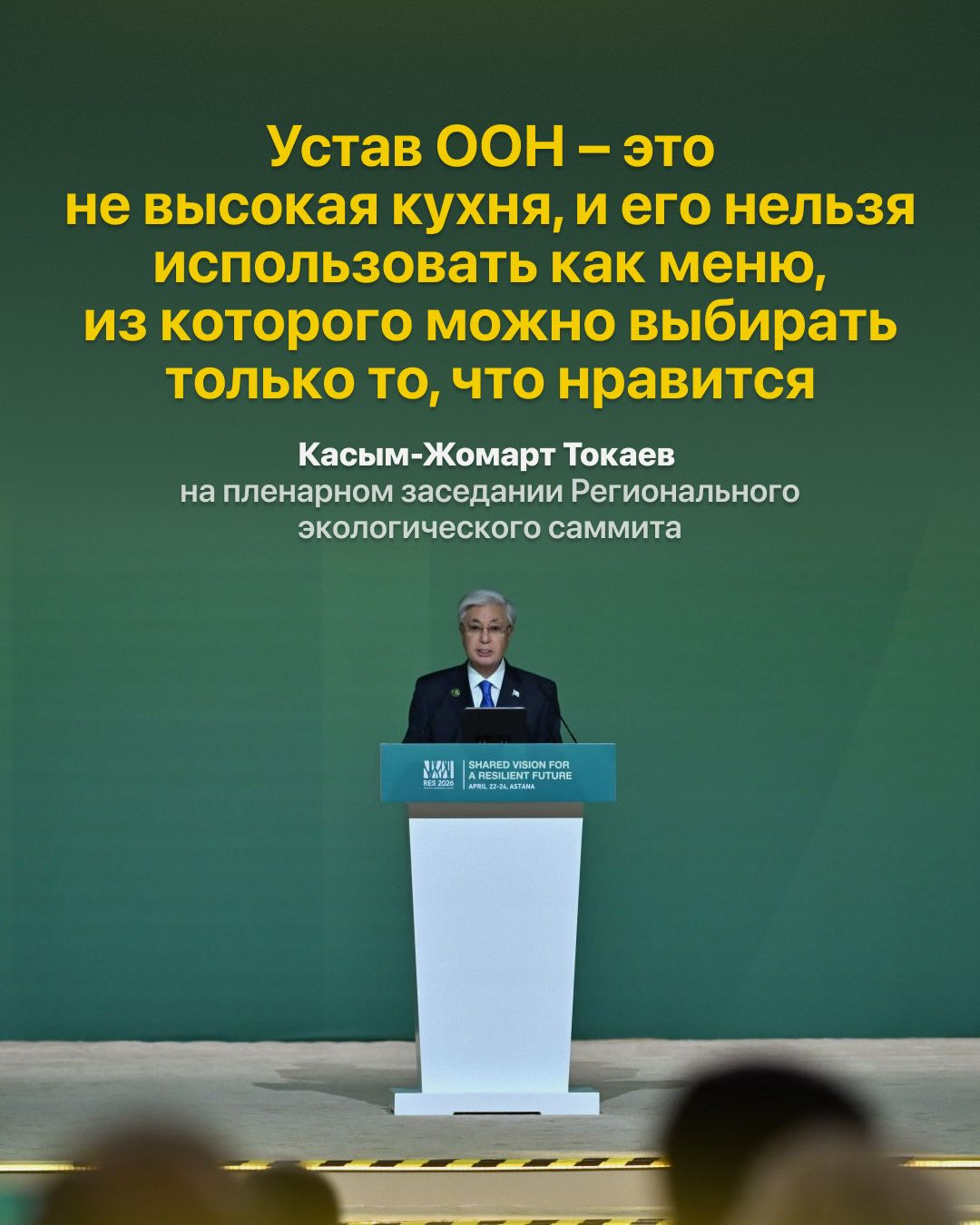Во время выступления на Региональном экологическом саммите Президент в очередной раз напомнил, что сегодня мир сталкивается с нарастающей неопределенностью и непредсказуемостью, что напрямую влияет на глобальную и региональную стабильность, а также на качество жизни людей.